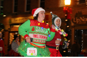 The Fantasy 5K race and one-mile family fun walk is one-of-a-kind. Runners don their favorite holiday apparel, costumes and lights to race along the parade route. The atmosphere is fun and exciting with a crowd on each side of Grand River cheering on our festive racers.