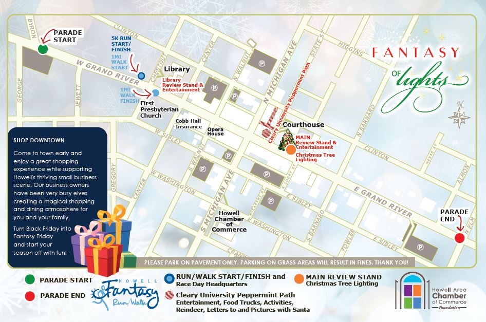 Closing Grand River for the parade takes a lot of coordination with our partners at the City of Howell and Howell Police Department. Please take note of the following detours that will be in place for the Fantasy of Lights.